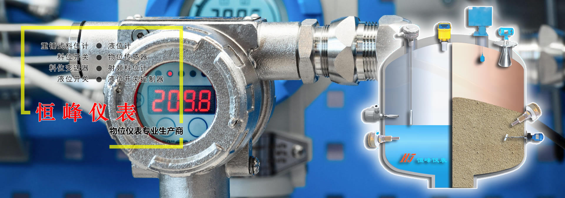 廣東恒峰儀表科技有限公司先后成功研制開發(fā)了“重錘式料位計(jì)”、“數(shù)字式射頻電容料位液位開關(guān)”、“數(shù)顯式射頻電容料位液位計(jì)”、“射頻電容料位液位變送器”、“超聲波液位料位計(jì)”、“雷達(dá)式液位料位計(jì)”、“音叉式液位料位開關(guān)”、 “阻旋式料位開關(guān)”等產(chǎn)品,其中“重錘式料位計(jì)”能夠克服傳感器機(jī)械慣性,能有效地避免鋼纜易被拉斷的現(xiàn)象,還有“射頻系列料位液位計(jì)”以其“數(shù)字射頻技術(shù)”,解決了以往 “電容式料位計(jì)”應(yīng)用上普通出現(xiàn)“ 溫漂大”、“ 難標(biāo)定”的問題,并已為水泥、化工、電力、鋼鐵、糧食、飼料、煤炭等多行業(yè)作出了杰出貢獻(xiàn)。